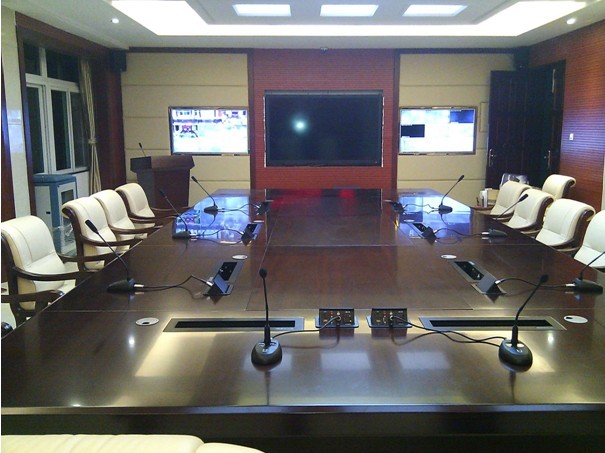 會議室高檔典雅的外觀設計,定位于中高端會議室安裝,其穩定的音頻電路,使麥克風的聲音保真度高、音質清晰;MS-189會議麥克風靈敏度高、噪音低,音色圓潤、清脆,一直是會議工程安裝的最佳選擇,兩款麥克風支持電池、幻象電源兩種供電方式,方便使用;為了更好的保證音質與效果,在此次擴聲設計中還使用了TS-808八路智能混音器,音質清晰自然,具備48V幻象供電,可實現高質有序的會議控制,可根據使用需求調整主席模式、順序模式、自由模式等模式。