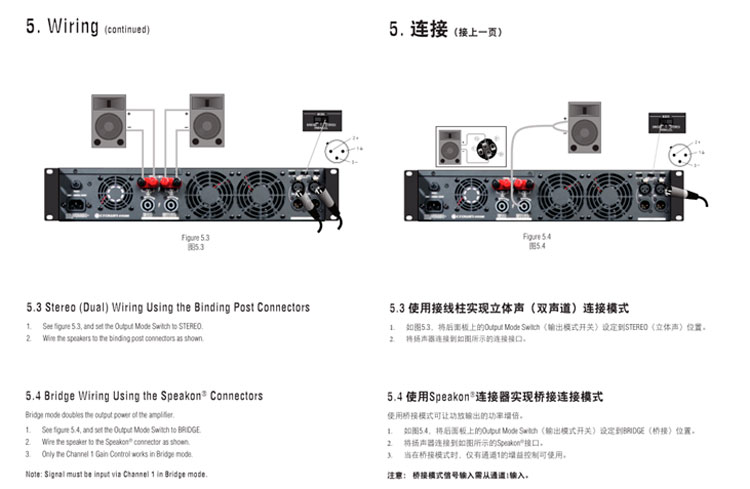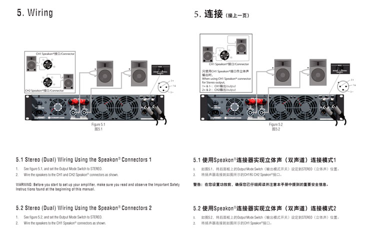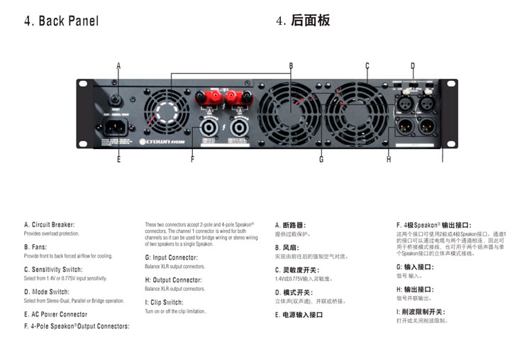 RCA和XLR輸入接口;Speakon® 和喇叭接線柱輸出接口