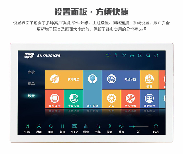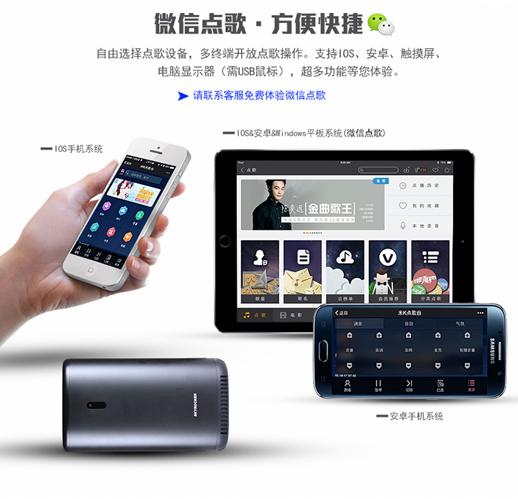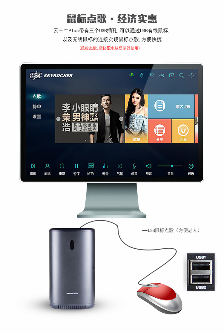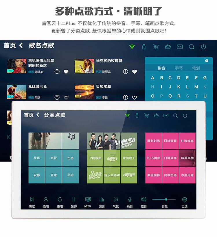 >> 支持觸摸屏、手機、APP鼠標多種點歌,適應各類人群和場合
