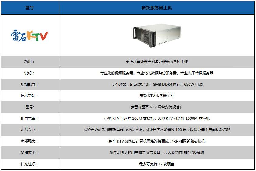 產品特點雷石視頻服務器是業內最先進、最安全的服務器,根據不同的配置單臺服務器最高可支持60個房間同時點歌。可支持雙機熱備,在一臺視頻服務器故障時,其它視頻服務器可承擔起故障服務器的工作,而不中斷營業。